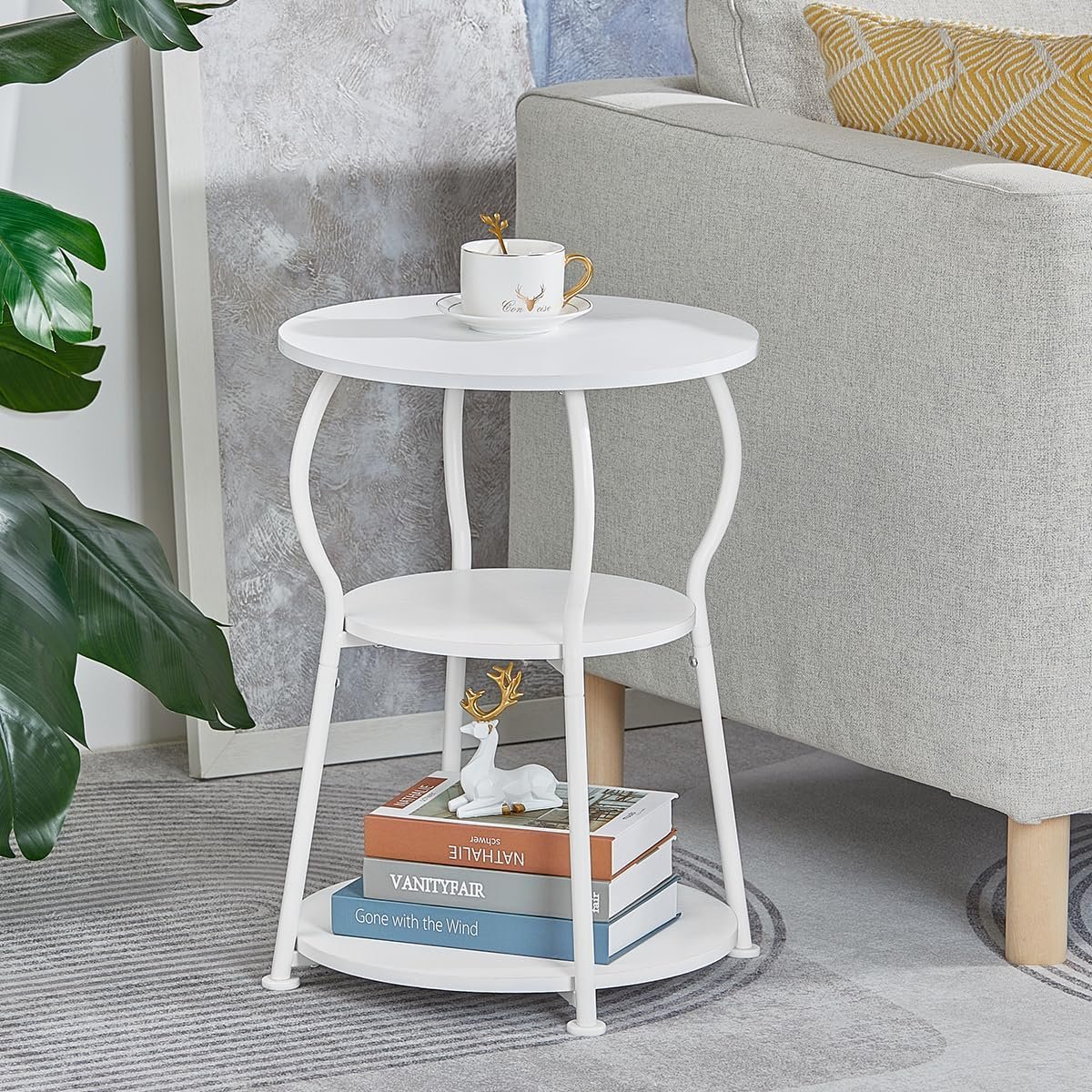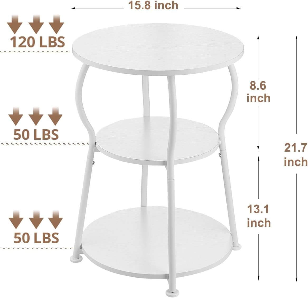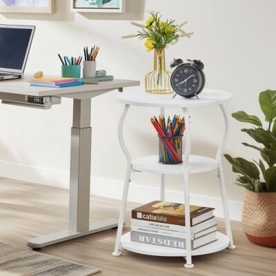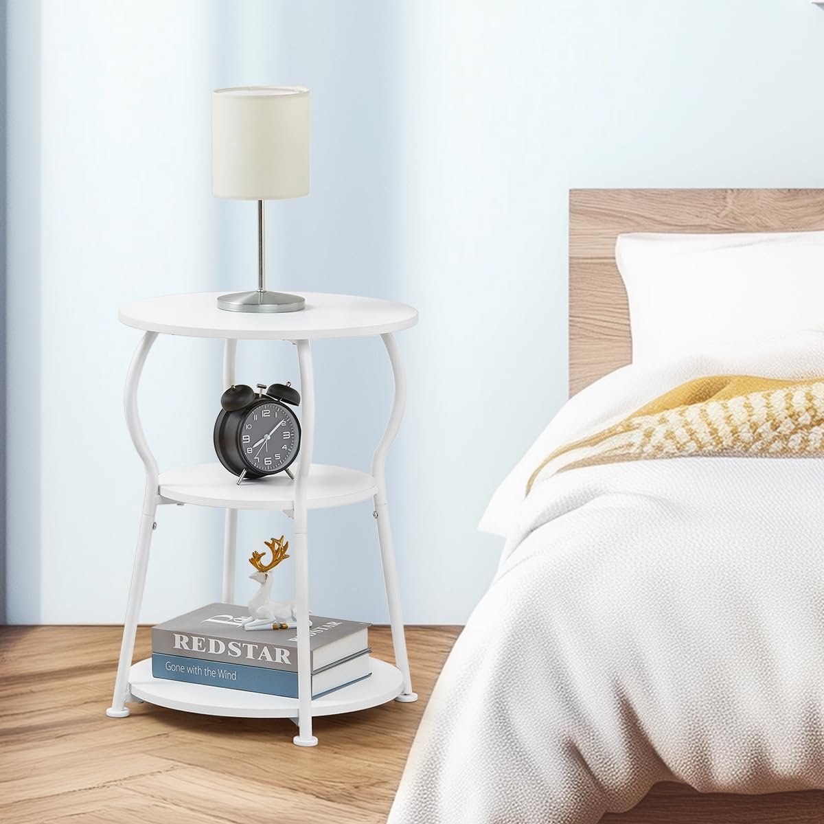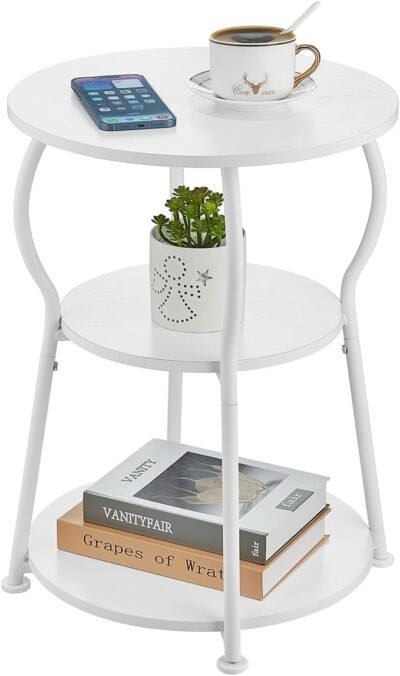 3-Tier SIDE TABLE WITH ADJUSTABLE FEET: Wood side table features a 3-tier design, with each tier capable of holding up to 50 pounds. It also includes adjustable feet, adding flexibility to the end table and allowing it to adapt to uneven surfaces. This extra design ensures stability, preventing wobbling and enhancing this nice small nightstand table’s durability.