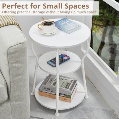 PERFECT FOR SMALL SPACES: Stylish small round side table is ideal for any room, fitting perfectly in tight spaces like offices, bedrooms, dorms, and living rooms. Its sleek design complements minimalist decor, offering practical storage without taking up much space. Whether used as a bedside table, corner table, or plant stand, it adds a stylish touch while providing functionality in small apartments or limited spaces. Perfect for homes, nursery, or offices, it’s the ideal choice for anyone needing a compact, versatile table.
