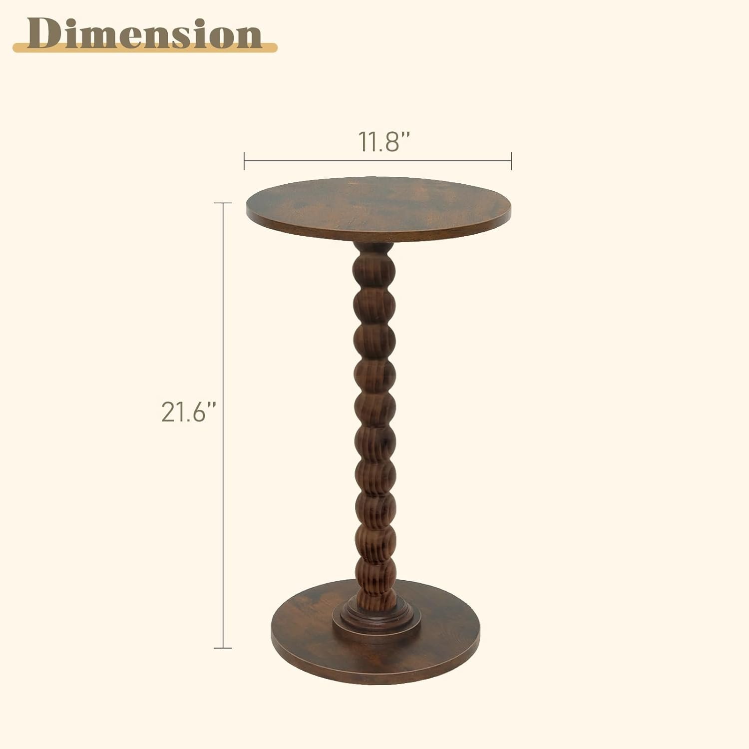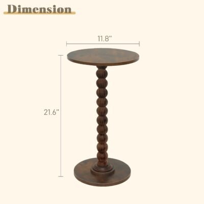 Compact Size: The overall dimensions of this round side table are 11.8”Dia. x 21.6”high. Featuring a compact and lightweight design, the round side table saves space and allows for effortless placement anywhere
