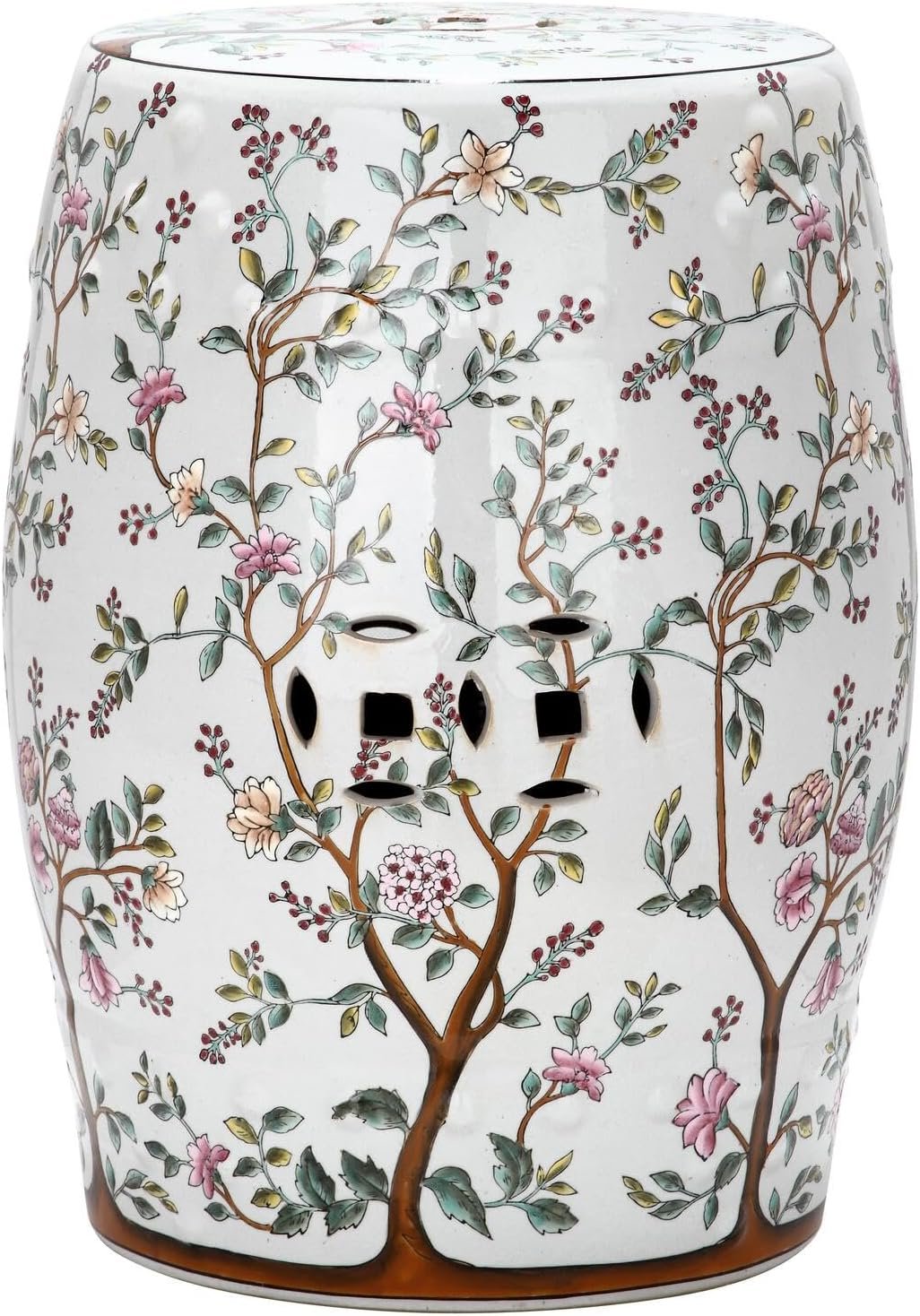 Add a classic accent your garden, patio, deck, or any indoor room with the Safavieh Castle Gardens Collection Blooming Tree White Ceramic Garden Stool. Handmade of quality ceramics, this stool can be used outside or inside as an extra seat, foot rest, small table, plant stand, cocktail table and anything else you can think of. This garden stool is sure to be the talk of your next party. This garden stool measures 13 Inch wide by 13 Inch deep by 18.5 Inch tall.