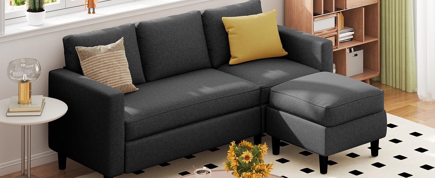 【Saving Space】Three seater sofas are suitable for small spaces, compact and convenient. With movable cushions and footstools, you can adjust your sitting posture to suit you best.
