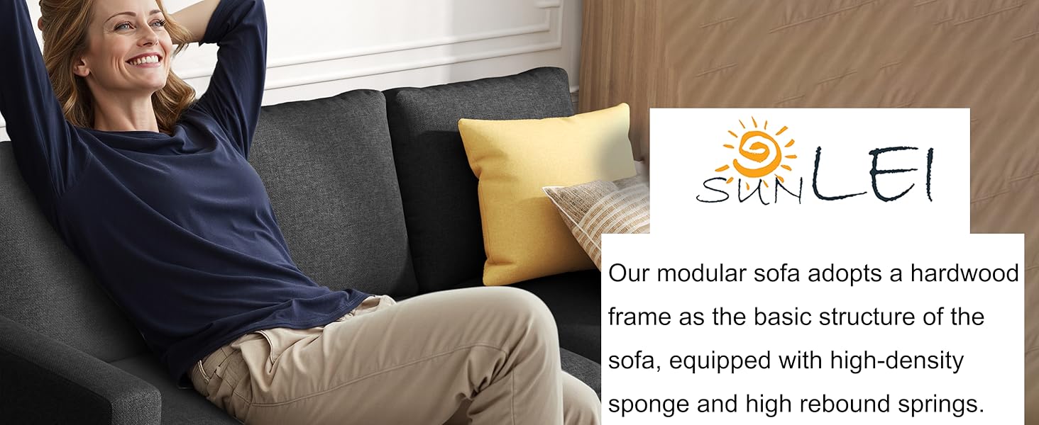 【High level of Stability】Our modular sofa adopts a hardwood frame as the basic structure of the sofa, equipped with high-density sponge and high rebound springs. You never have to worry about sinking.