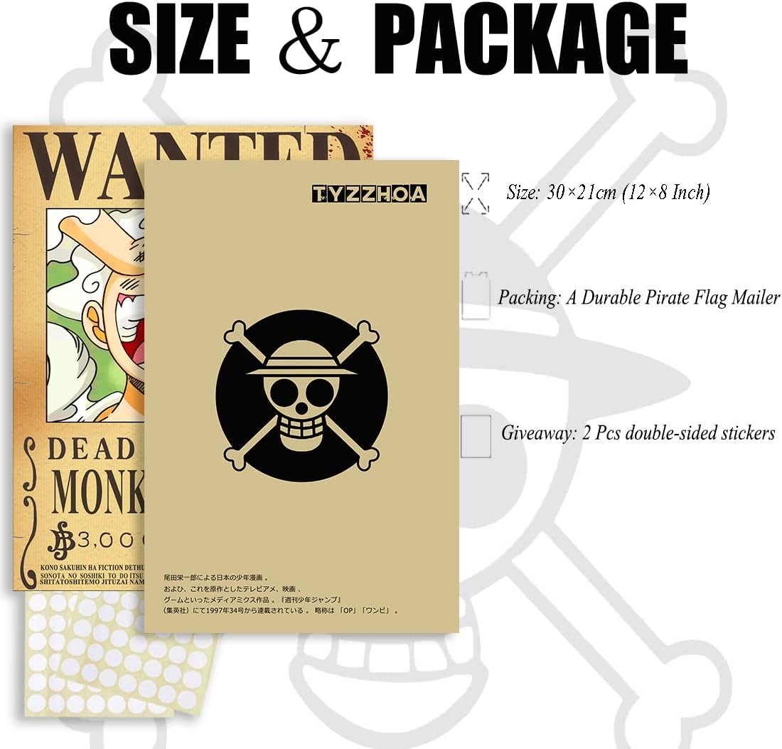 ![TYZZHOA 25PCS Anime [OP] Wanted Posters 30×21cm, New Bounty Edition, Straw Hat Pirates Crew Nika Luffy 3 Billion, Zoro, Sanji, [OP] Anime Gifts(Retro) TYZZHOA 25PCS Anime [OP] Wanted Posters 30×21cm, New Bounty Edition, Straw Hat Pirates Crew Nika Luffy 3 Billion, Zoro, Sanji, [OP] Anime Gifts(Retro)](https://m.media-amazon.com/images/I/81C1ureEBbL._AC_SL1200_.jpg)