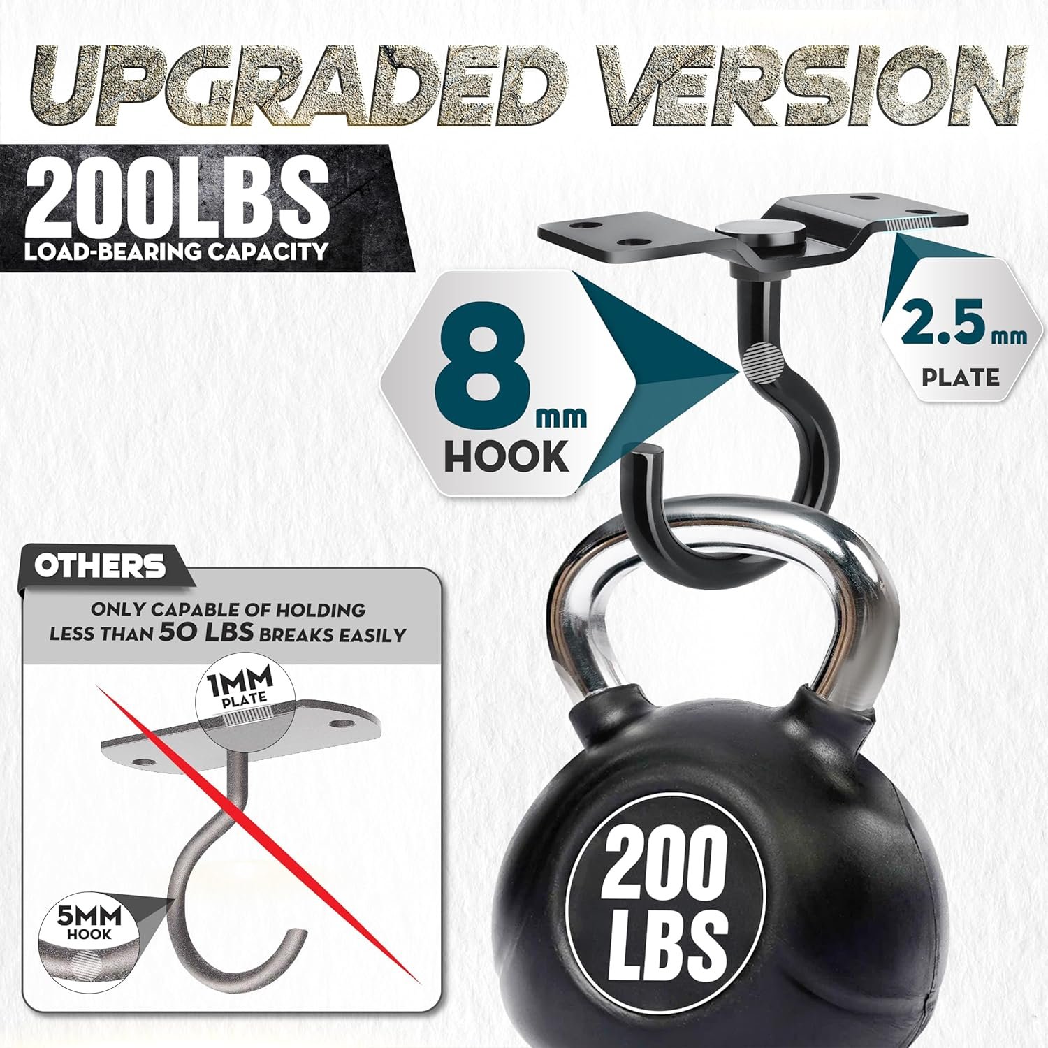 [8MM Diameter Extra Thick Hook] Compared to normal plant hooks, our heavy-duty metal ceiling hook has an upgraded wide opening design with a 2.5mm base thickness and a big forming arc up to 8mm thickness. It is not only sturdy but also ensures maximum stability and reliability and can hold heavy objects securely.
