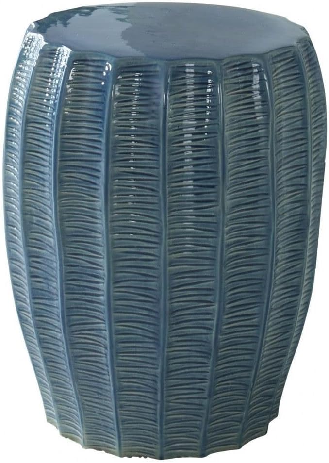 Striking And Multifunctional, This Ceramic Garden Stool Features A Fun Scalloped Edge With Hand Carved Geometric Details Finished In A Striking Aqua Blue Glaze. May Be Used Outdoors, But Protection From Freezing Temperatures Is Recommended.