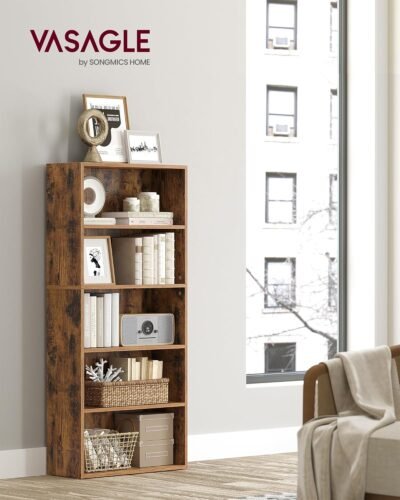 [Spacious] This 5-tier bookcase sized 9.4″D x 23.6″W x 52.8″H utilizes vertical space to display your favorite books or special treasures. This keeps them easily accessible in the living room, study, or bedroom