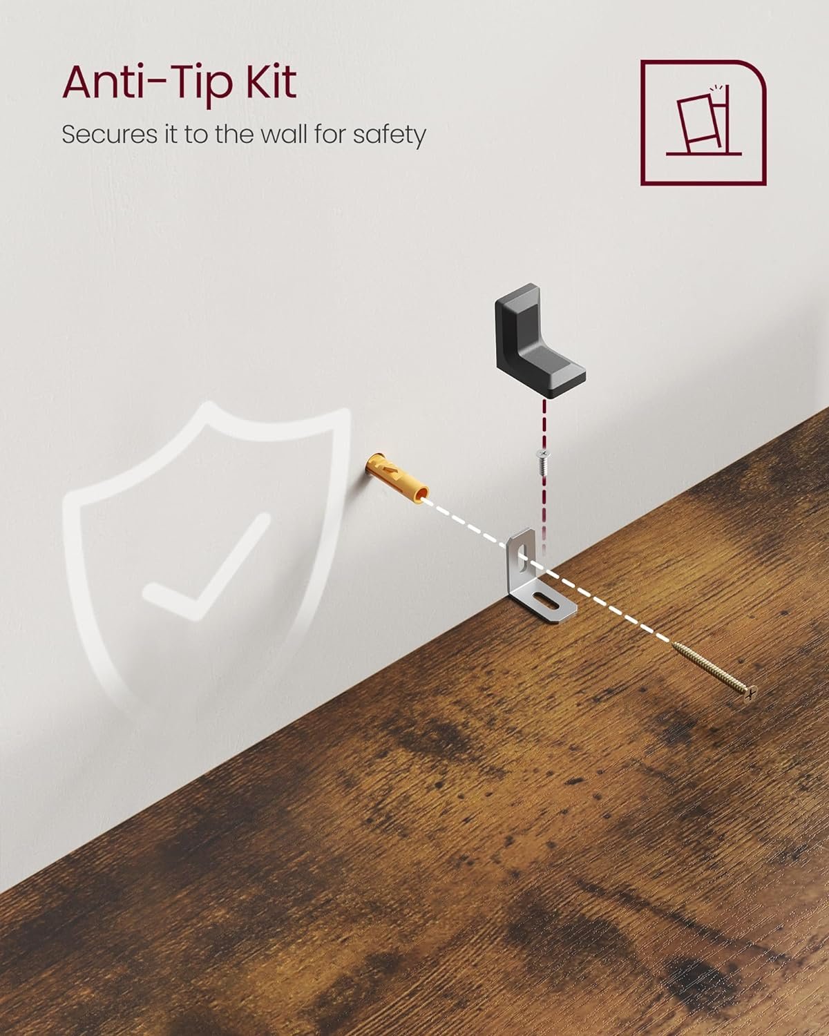 [Stable and Safe] The slot-in back panel and H-shaped structure enhance the stability of the bookshelf. The anti-tip kit included lets you secure it to the wall for safe use