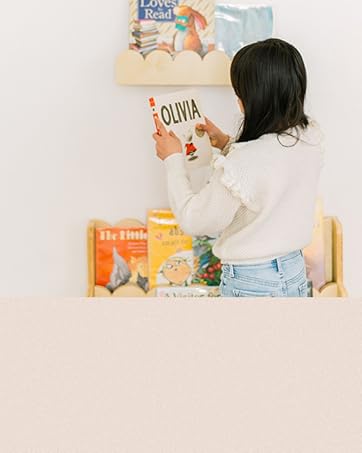 Book Organizer for Kids: Encourage your child to read with our adorable wooden kids book shelf organizer for little readers. This Montessori and Waldorf style book display encourages autonomy and allows your child to reach and grab books easily.