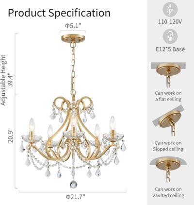 Be the first to review “WUZUPS Crystal 5-Light Candle Chandelier Pendant Flushmount Ceiling Light Modern Lighting Fixture for Bedroom Hallway Bar Kitchen Bathroom, H 20.9″ x W 21.7″, Gold, E12 Base” Cancel reply