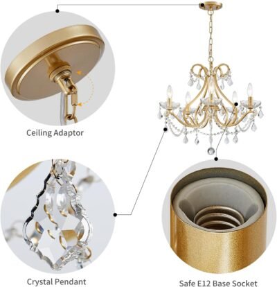 Easy Installation: Assembly required(include hanging the crystal strings to the gold plate) and easy to install, with all mounting hardware and a detailed mounting instruction included.