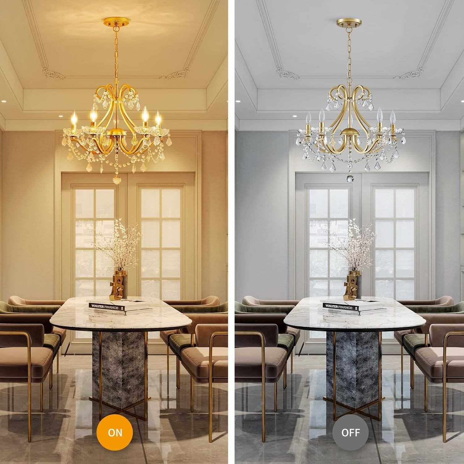 WUZUPS Crystal 5-Light Candle Chandelier Pendant Flushmount Ceiling Light Modern Lighting Fixture for Bedroom Hallway Bar Kitchen Bathroom, H 20.9″ x W 21.7″, Gold, E12 Base