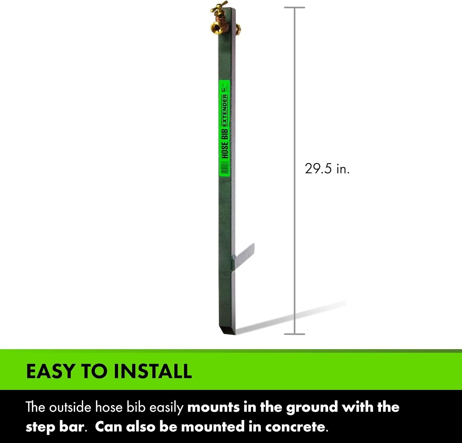 This outdoor spigot extender is made of heavy-duty powder-coated steel with brass fittings, ensuring that it won’t leak or break under pressure, making it a durable and long-lasting addition to your gardening supplies. Installation of the Yard Butler Hose Bib Extender is a breeze, with no special tools or plumbing required. Simply slide the outside hose bib over a fencing “T” post or mount it in the ground with concrete to get started.