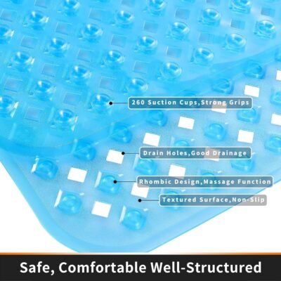 ANTI-SLIP: The presence of a fine non-slip texture on the surface of the shower pad. The back with 253 powerful tight suction cups, make sure the mat on shower bathtub is stable. Note: Mat will only attach to clean, smooth surface. Not for use on textured, or non-smooth surfaces