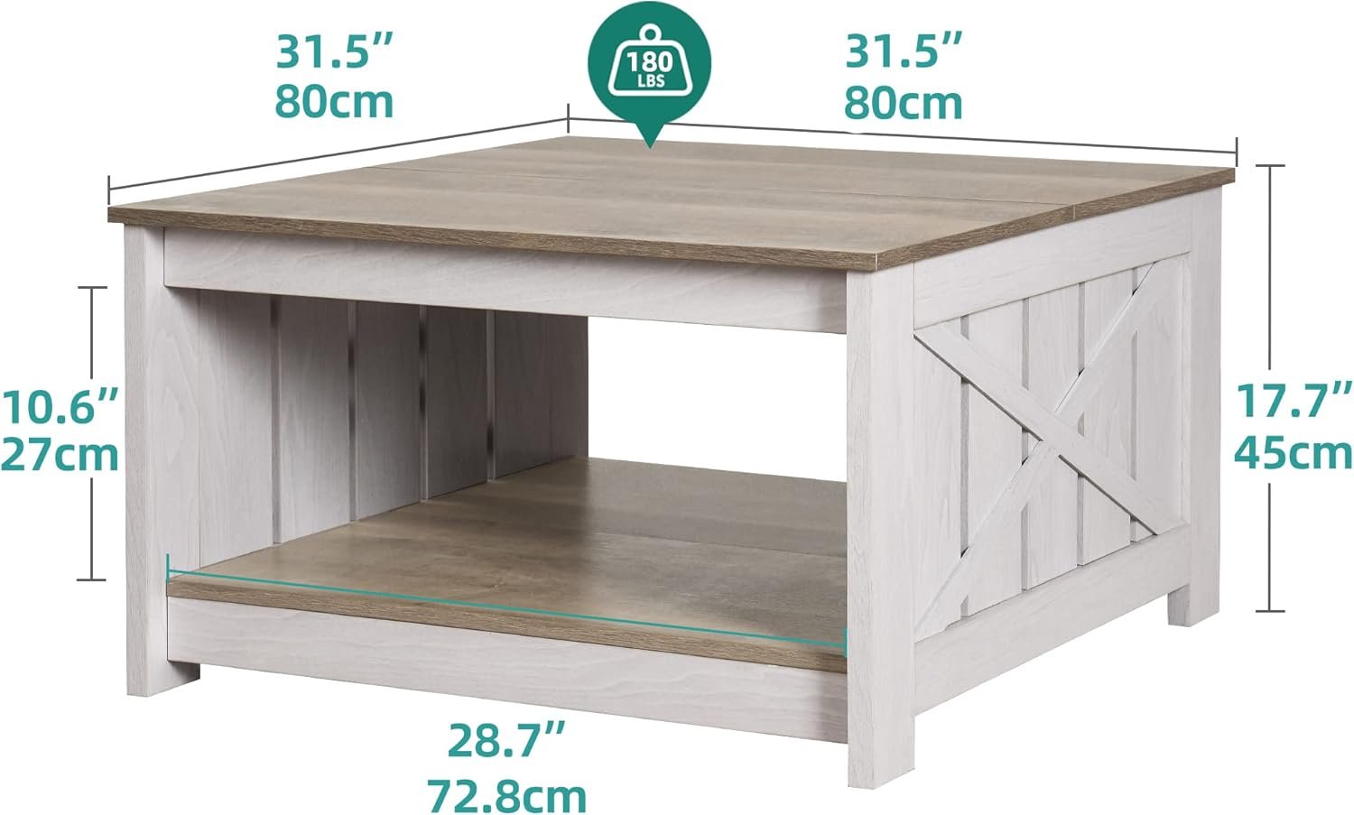 MODERN & FARM STYLE- Our coffee table combines the natural grey wash with grayish-white; the minimalist design also adds unique rustic aesthetic to your room; square coffee table can complement any modern or rustic rooms, highlighting your personal taste and ideals