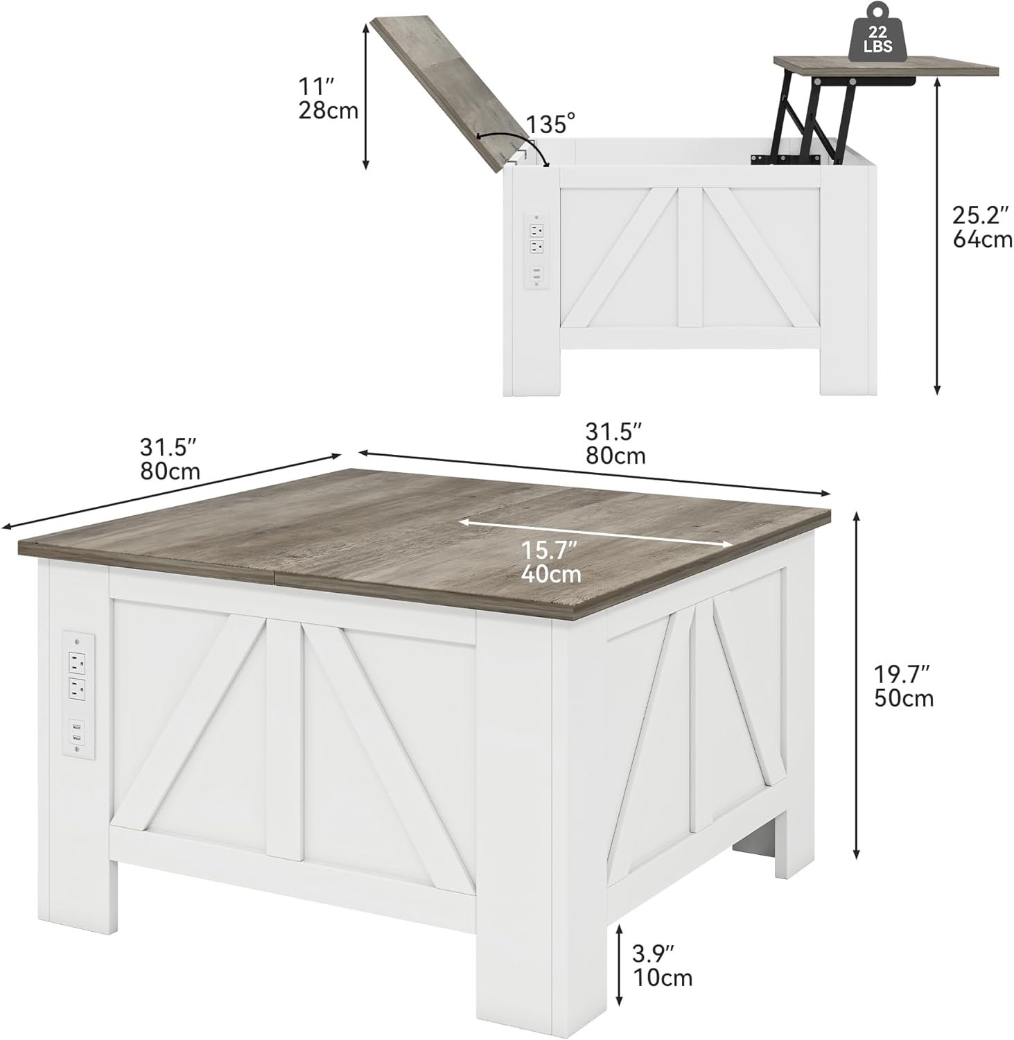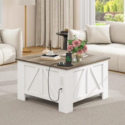 【Charging Station & USB Ports】Storage coffee table side features a charging station, including 2 power outlets, 2 USB ports and 1 type C port, to meet your various charging needs. Provide charging needs for your laptops, mobile phones, iPads and game devices at all times.