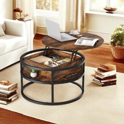 The round lift top coffee table has a spacious position below, enough for pets to entertain below and to accompany you while you work.