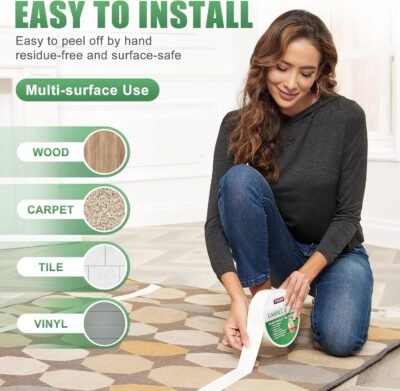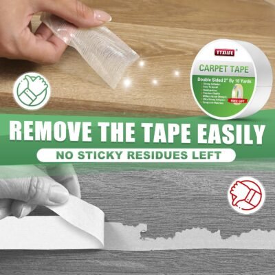 EASY, RESIDUE-FREE REMOVAL: Rug tape is a strong double-sided tape on the market, which is incredibly easy to use. Our carpet tape is bonded to paper, making it easy to peel by hand without damaging the surface below