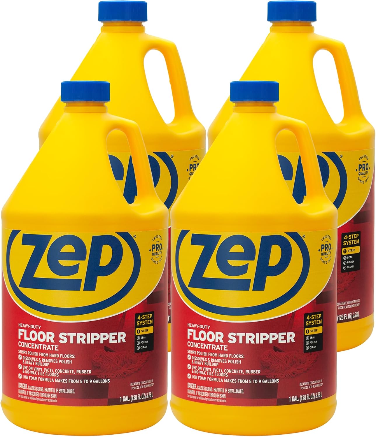 Digs Deep: Zep Heavy-Duty Floor Stripper Concentrate removes stubborn finishes and heavy buildup to prepare for a new finish. It is ammonia-free and has a low-foam application