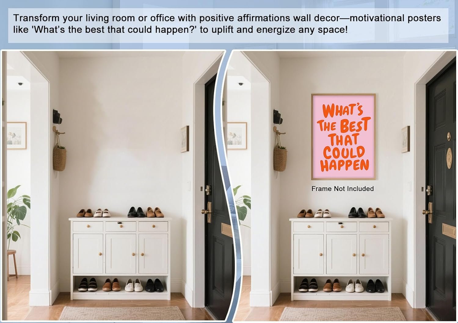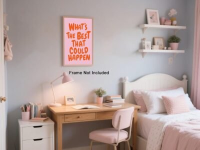 What’s The Best That Could Happen Poster – The combination of red and pink makes people feel warm and pure, and matched with the theme of “What’s the best that could happen”painting picture, it shows the love for this room and makes the tired body feel the relaxation and comfort that this room brings